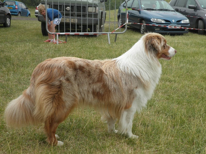 First est une chienne "multi-fonction", en effet elle est chienne d'expo, de famille, de garde et de ferme où elle travaille sans ménager sa peine sur les vaches desquelles elle se fait respecter mieux que moi!